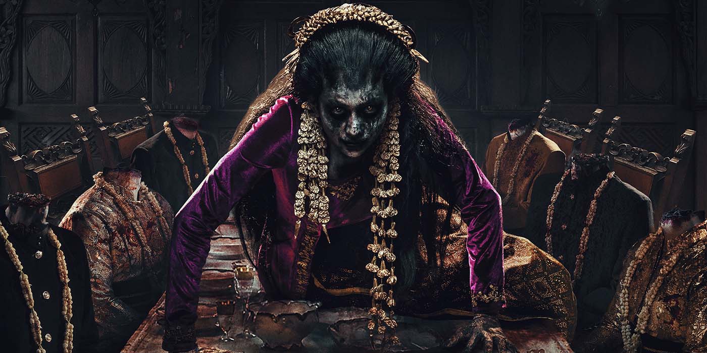 Dalam poster ini, terlihat seorang wanita dalam balutan baju ungu dan riasan pengantin, berwajah rusak dan mengerikan merayap di atas meja jamuan. Meski nampak megah namun visualnya juga memperlihatkan sekeliling yang penuh darah dan para tamu tak bernyawa, beberapa tanpa kepala, mengenakan pakaian adat yang sudah membusuk. Satu sosok hidup di tengah kematian, siapakah dia? Dan mengapa seluruh ruangan tampak seperti perjamuan yang dikutuk?\