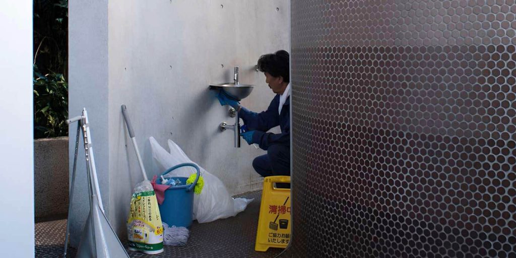Ia sesekali bertemu orang yang ingin memakai toilet dan membuatnya menyingkir sementara waktu sebelum melanjutkan tugasnya lagi.